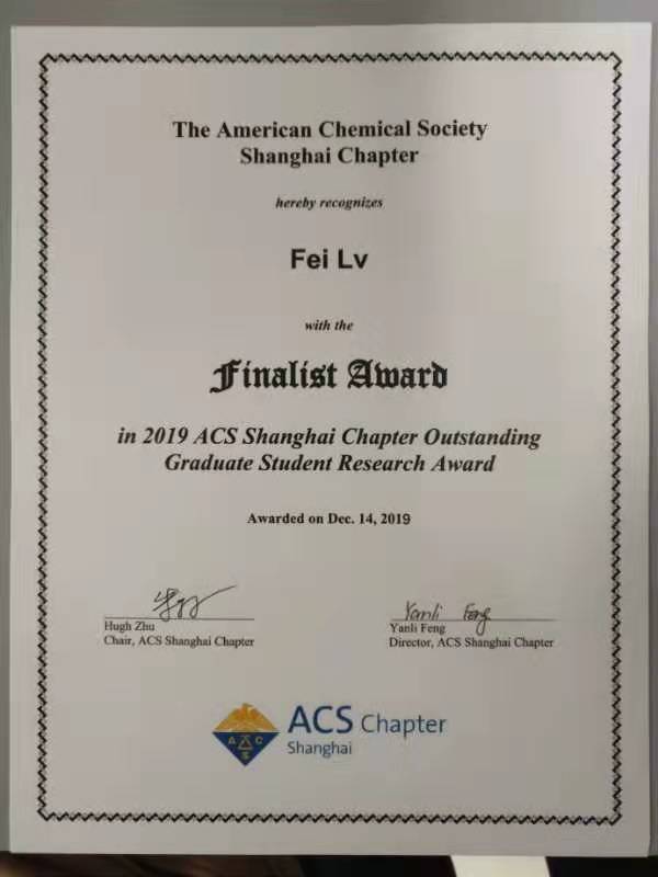 祝贺吕飞同学获美国化学会上海分会杰出研究生决赛奖